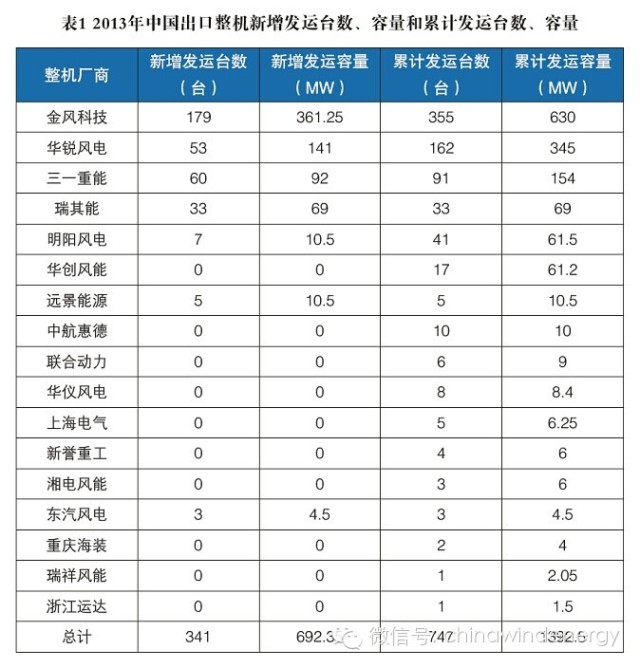2012年和2013年中國整機商出口統(tǒng)計 2012年,中國共有7家風電機組制造商向國外出口風電機組,已發(fā)運的數(shù)量為225臺,容量430.45MW。截至2012年年底,中國風電機組制造商已出口的風電機組共計407臺,總?cè)萘窟_到700.15MW。與往年相比,2012年中國風電機組制造商在“走出去”方面取得明顯突破,2012年出口的設備容量和整機數(shù)量雙雙超過往年總合。風電機組出口國家從2007年的1個擴大到2012年的19個,其中美國是最主要的風電機組出口國。